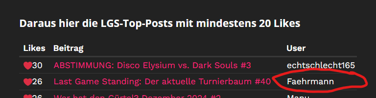 Die Community war und ist mein Superstar der ganzen Angelegenheit hier. Einige waren schon zu Urzeiten von LGS dabei, andere kamen zu Zeiten von WASTED herein. Heute sind zwar viele der User nicht mehr aktiv, aber die, die aktiv geblieben sind, eint der gemeinsame Weg – ich möchte fast auch sagen, Leidensweg.