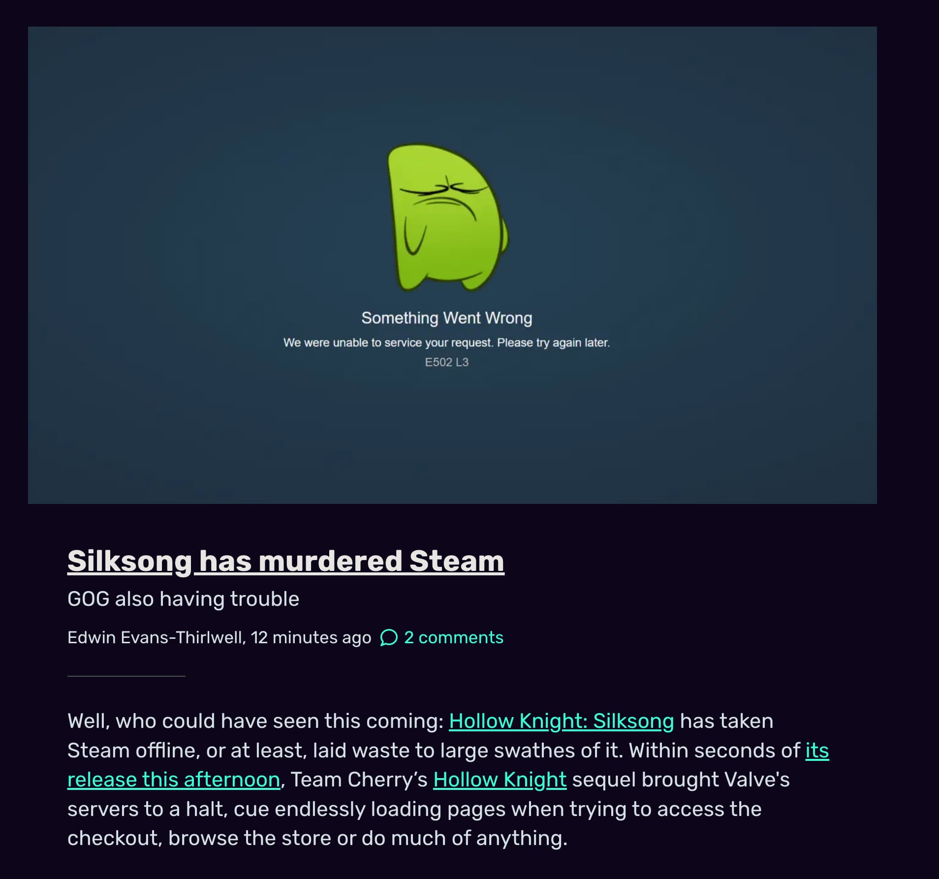 Ist ja garnicht mein Genre, aber interessant, dass man Steam noch down kriegen kann.